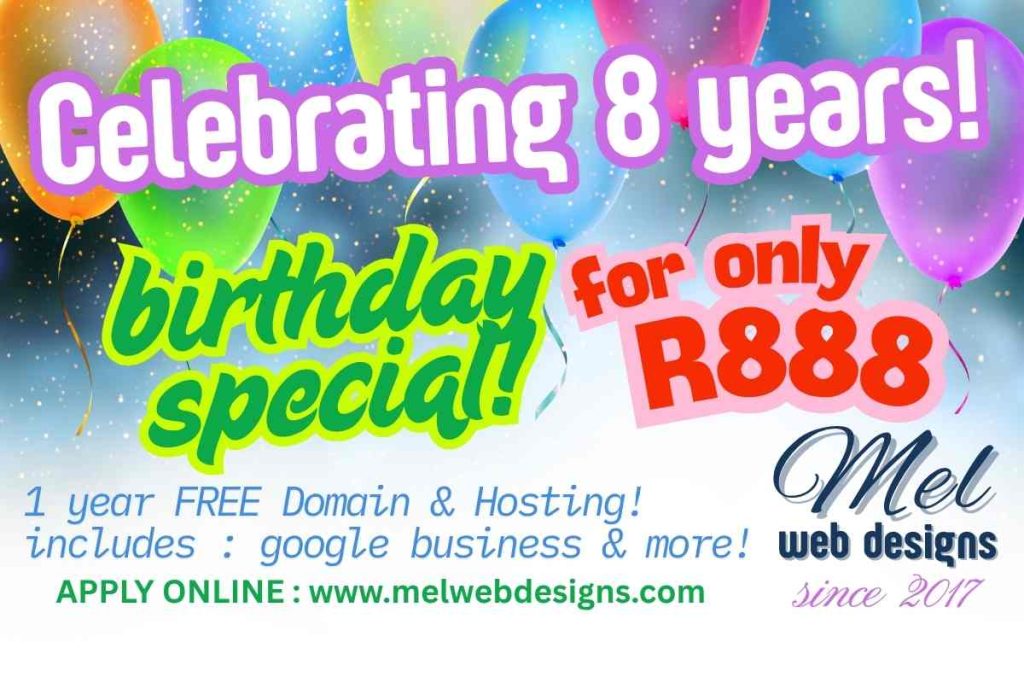 Website + 1 Year domain + 1 Year Hosting PLUS MORE for only R888! Contact Mel Web Designs @ 📞 072 273 118